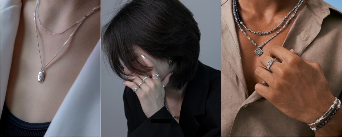 Trang sức bạc mang tone lạnh – kết hợp tốt với các chất liệu tương đồng như inox, bạch kim, vải lụa, len sáng. Nếu phối với chất liệu tone ấm sẽ gây xung đột thị giác.